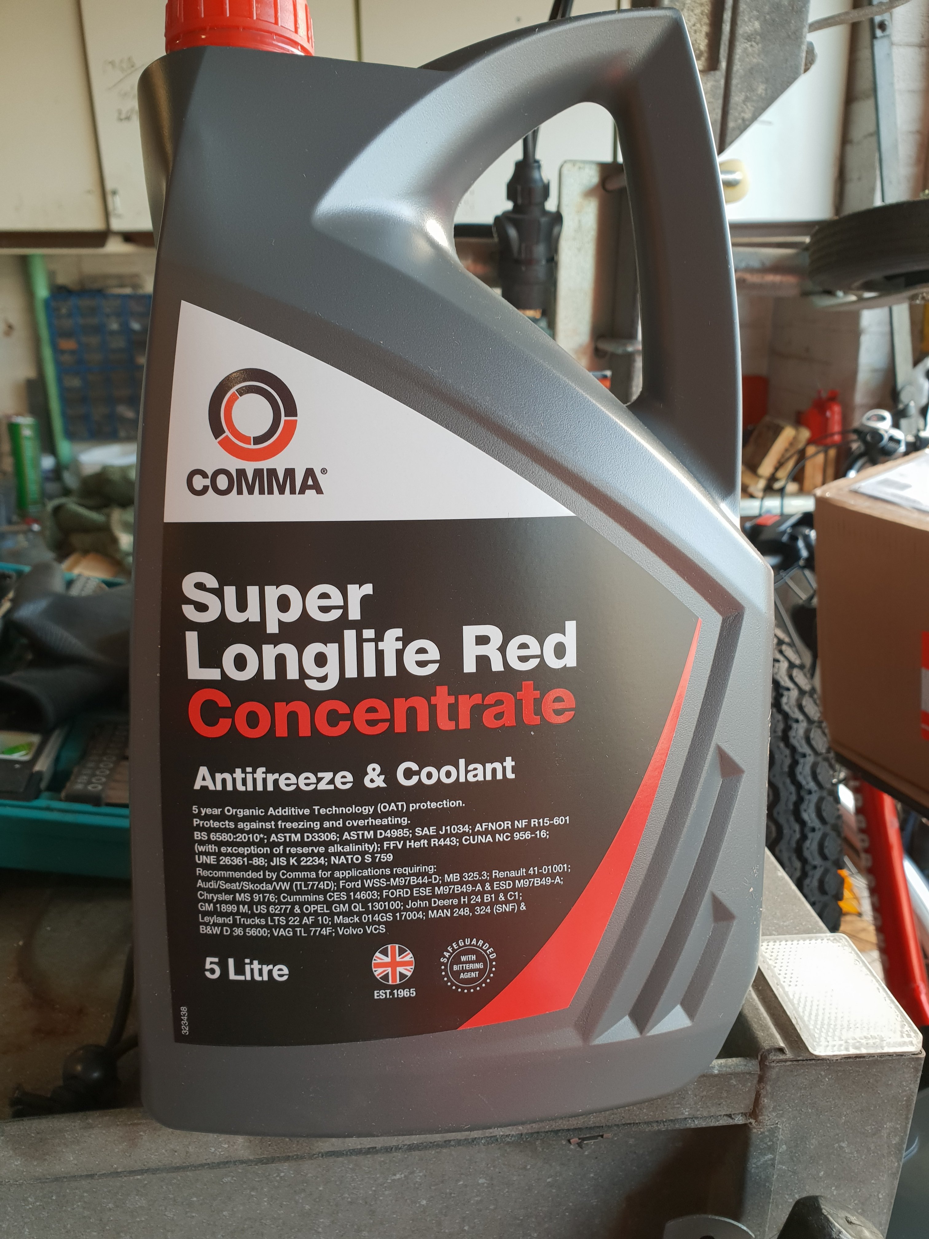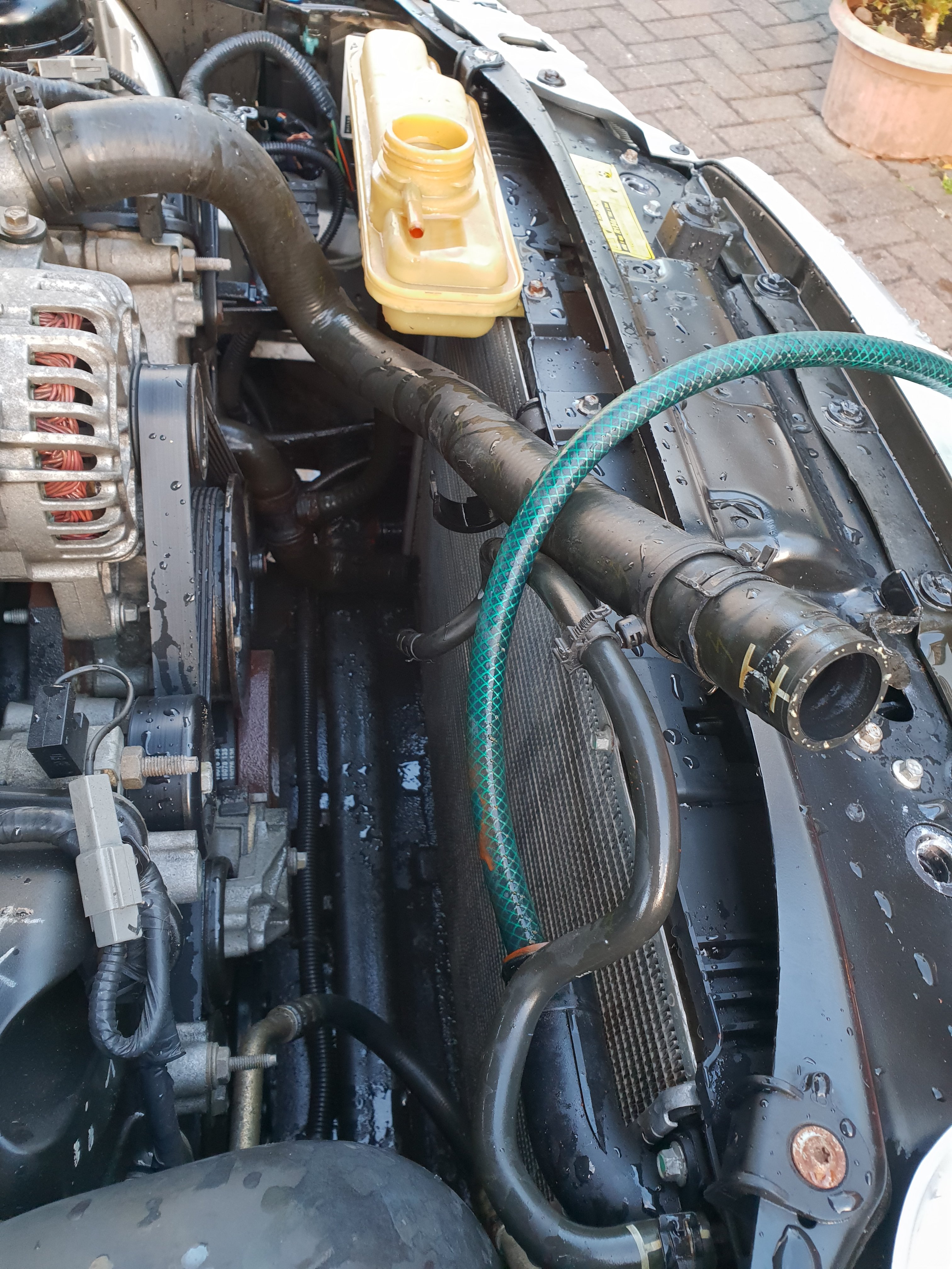 Removed the top and bottom radiator hoses to drain and flush through with a fresh water house pipe. Reconnected everything, added 4 litres of the new antifreeze and topped up with water. I noted the amount of water I added. The system holds about 12 litres in total so I know how much I’m adding to work out how much more will need to be topped up during the next few journeys.