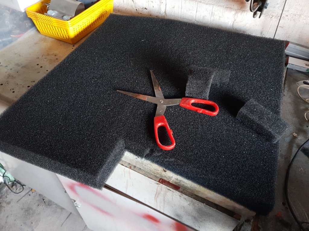 A bit of measuring and cutting to shape the foam to fit and then a bit of trimming to a shape that filled the gap nicely. Easily cut with a pair of scissors.