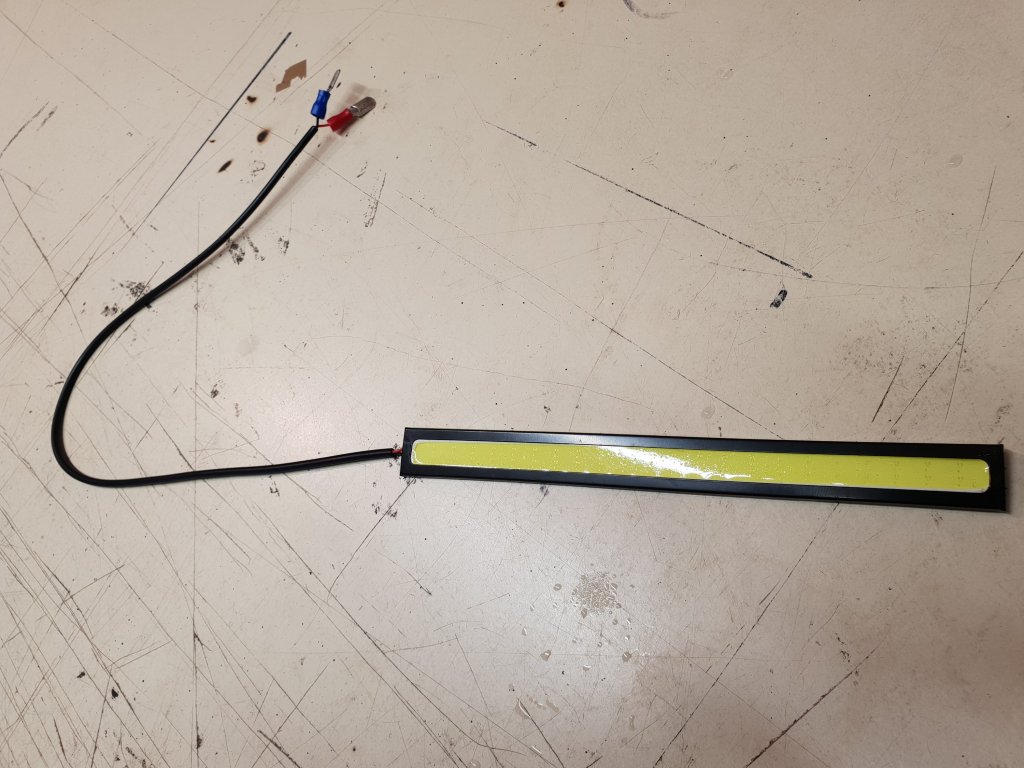 Wired into the wiring for the boot light which was lying along the top of one of the body sections and job done …… and very effective. These are available on eBay relatively cheaply as DRL lights see ….