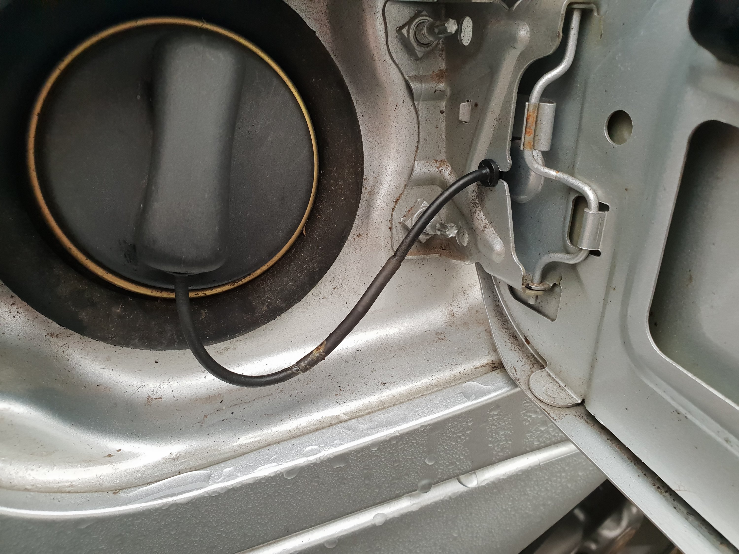 When I got the car the fuel cap cord had broken making it a bit tricky finding a convenient spot to put the cap whilst filling the car with fuel. The end that fixes to the body had deteriorated and crumbling. The photo above shows how I joined the two halves together – one half of the original piece that was left to a new piece to replace the deteriorated half.