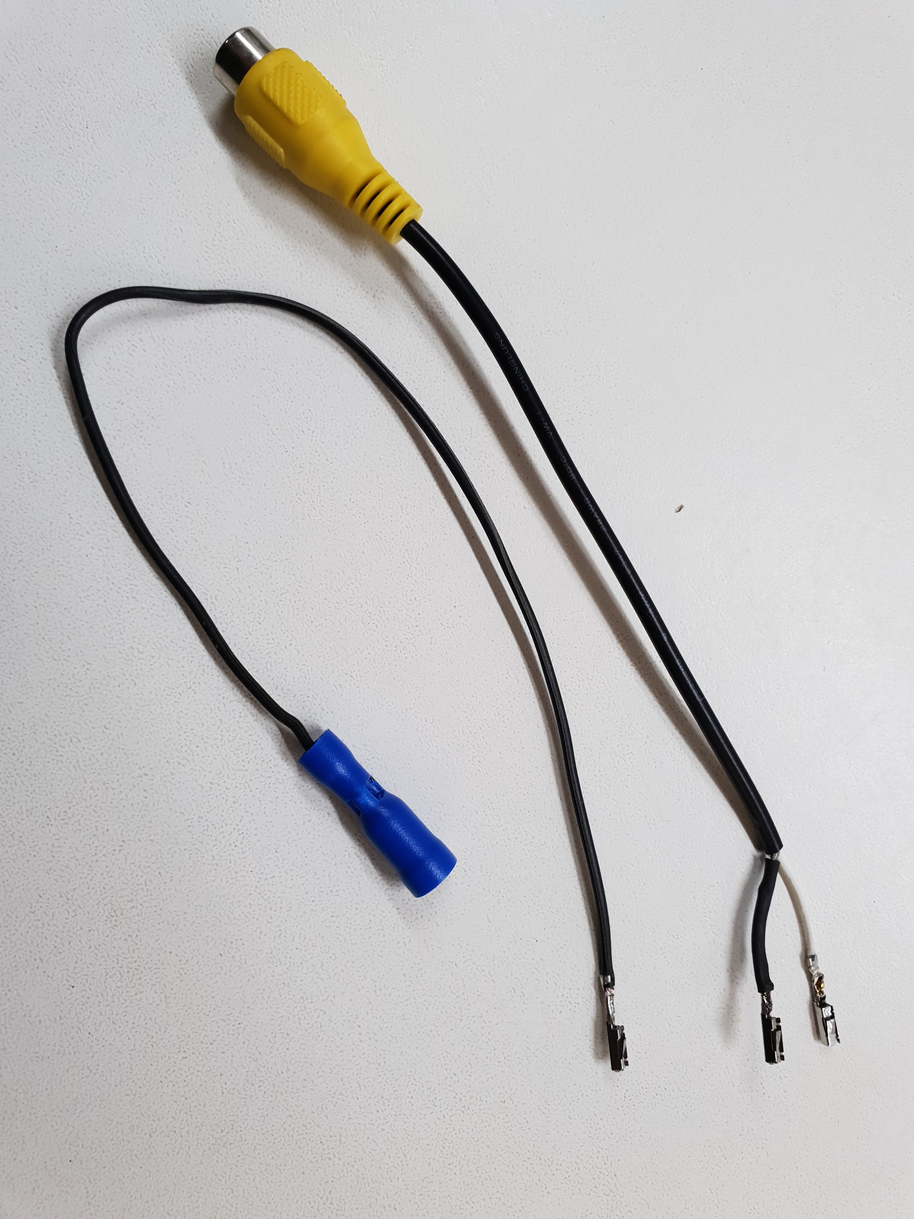 Theoretically the pins can just be crimped to the wire ends but I added a small bit of solder to make sure I had a good connection. So one pin is connected to the centre core the other pin to the shielding earth wire of the short cable. These will be the video input connectors from the camera soon to be fitted into the white plug of the video/tv unit.