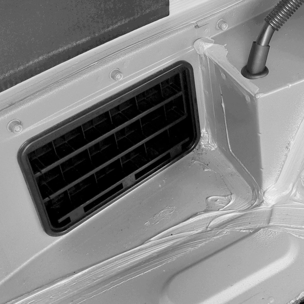 Not wanting to remove the bumper I sealed all around each vent from inside the boot with an ample beeding of a good quality silicon sealant. The sealant I used as shown in the photo is one used in caravan manufacture to seal and hold joints together.