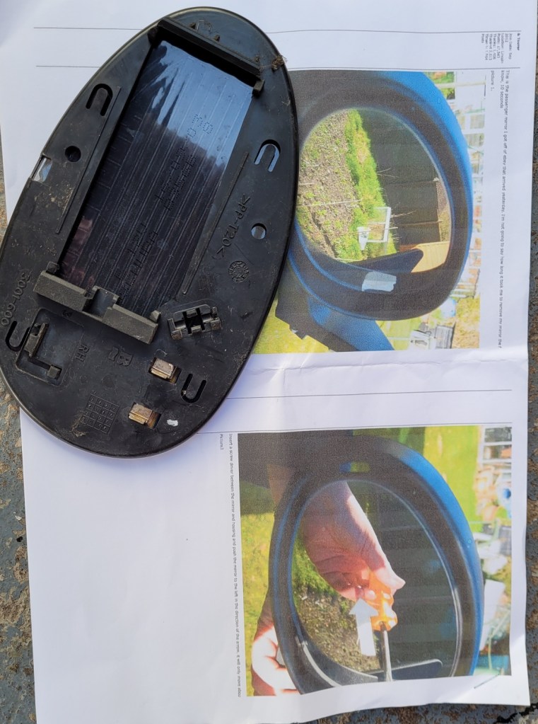 The old mirror was removed exactly as per “how to” instructions as found on the 75&ZT Owners Club forum. They are excellent …. the only addition I would add to those instructions is to use some silicon spray on the clips to ease re assembly.