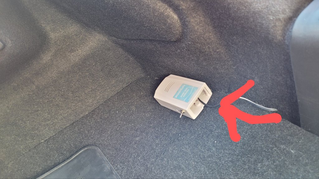 I had a water leak alarm kicking around on my garage from another project so I have utilised this in the car for the time being. I placed the sensor at the bottom of the well where any water will collect and the alarm in the boot.