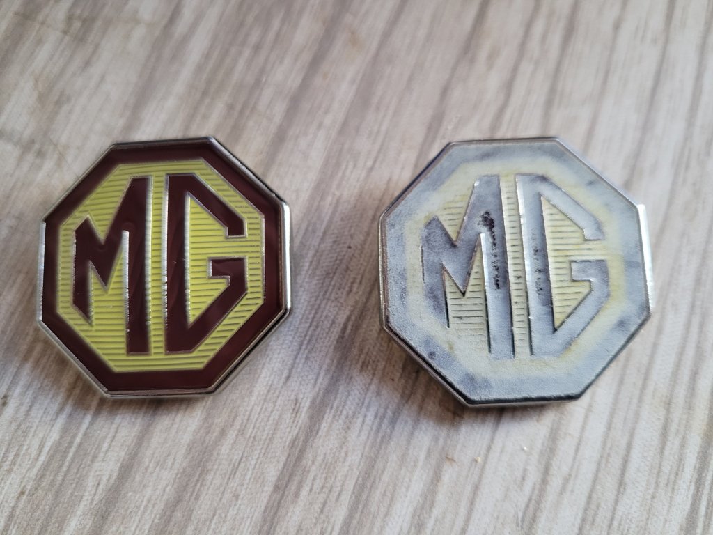 Soon after I bought the car I replaced the front and rear badges as they were so faded. Now after about 3 years the front and rear MG badges were getting in very poor condition so I bought some replacements via ebay. The difference can be seen from the photo below of the rear badge.