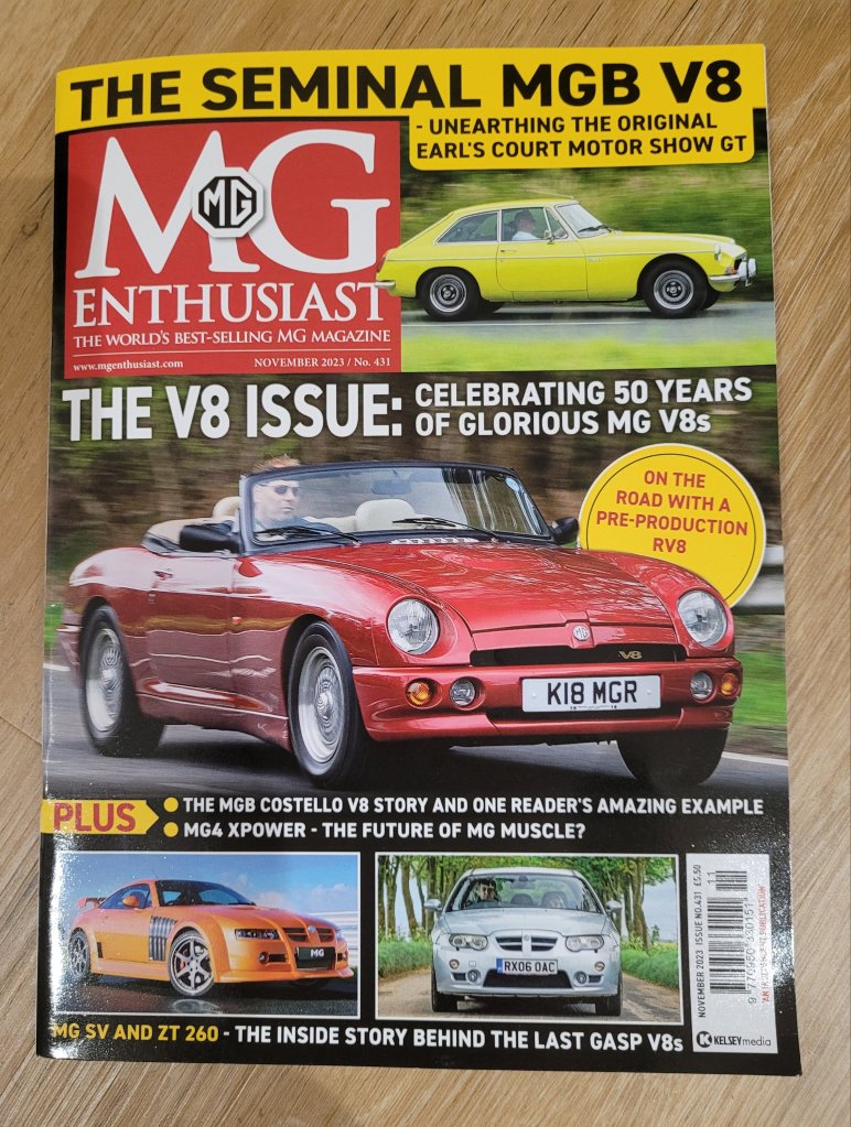 Managed to find a copy of the November issue of MG Enthusiast which has some interesting articles about the RV8 and the ZT V8. Two cars I am particularly interested in as I have one of each.
